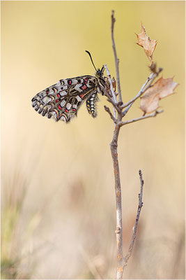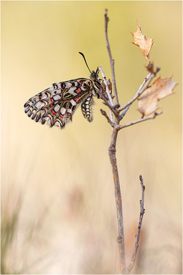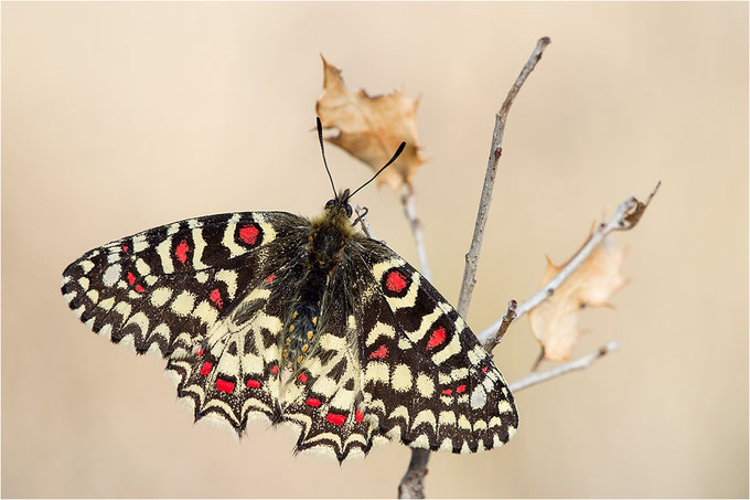 ...und ich war in der Provence, da sah ich denn auch Osterglocken. Passt ja irgendwie. Zeige ich auch noch, sind nämlich wirklich hübsch (gewesen). Und denn sah ich auch noch Osterluzeifalter, als ich Orchideen suchte. Die waren irgendwie ziemlich hibbelig, weil´s warm war und das Fotografieren war denn eher anstrengend und das Licht - nu ja, lassen wir das. Bin ich also paar Tage später noch mal hin und hab die morgens gesucht. Weil ja da genug von ihnen flogen und ich dachte, die werde ich schon irgendwie finden. Und nachdem ich da ziellos 20 Minuten am Hang rumkraxelte und der Sonnenaufgang näher und näher rückte und sich leichte Verzweiflung breit machte, da sah ich endlich einen im Eichenbusch sitzen. Zwei Meter daneben gleich noch einen und als die Sonne denn da war, klappte 50 cm neben dem ersten auch noch ein dritter Falter die Flügel auf. War schön, konnte ich paar Bilder machen, bevor sie wieder hibbelig wurden. War auch nicht so stürmisch, den Morgen, wie sonst und der Hang lag in einem Talkessel, ging also ganz gut, so ohne Wind. Sind die Spanischen Osterluzeifalter, die Südlichen sah ich dieses Jahr nicht.